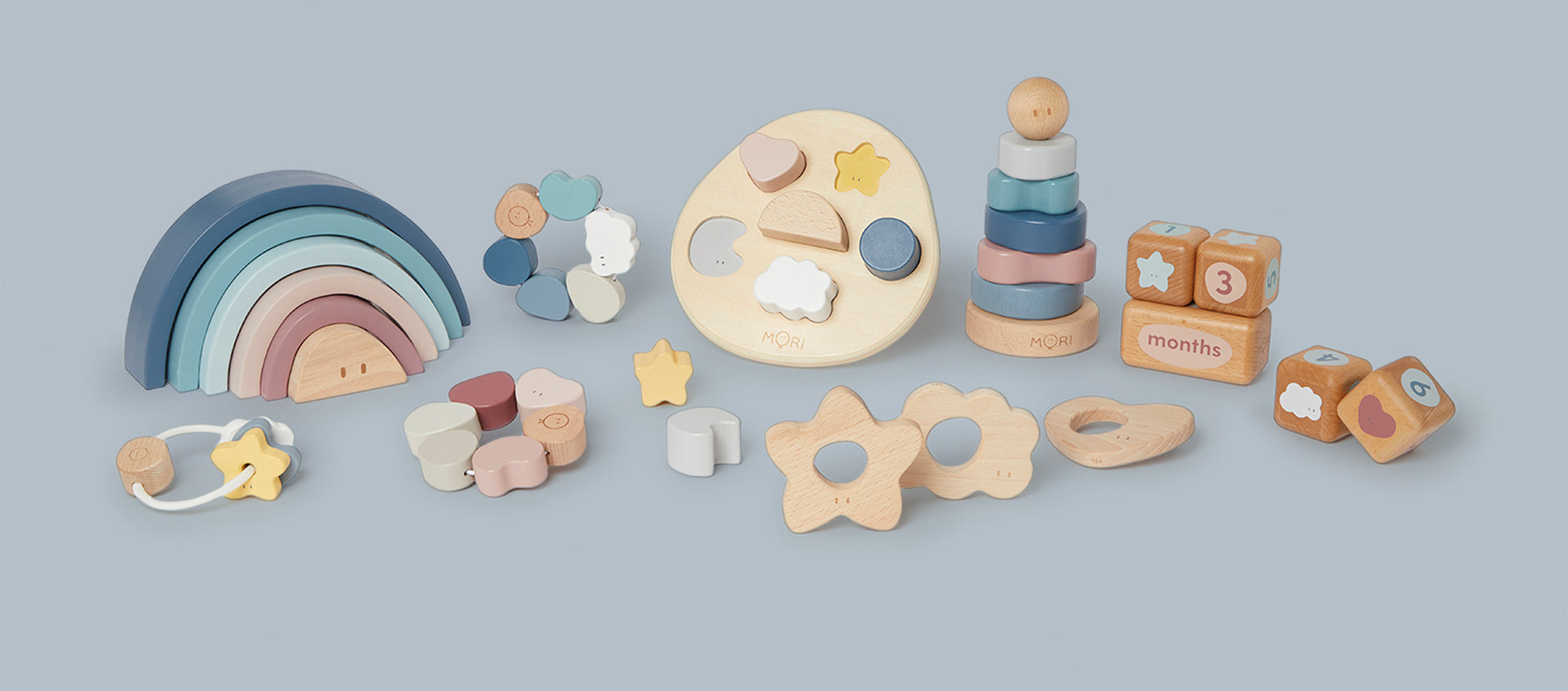 Little ones are naturally curious, so we created a range of wooden toys which would engage their curiosity and encourage independence. Our Playtime Collection is designed to inspire creativity and build foundations for cognitive and emotional development through hours of tactile play & learning. Designed for all ages our first-ever collection of MORI toys make wonderful baby shower & birthday gifts too.