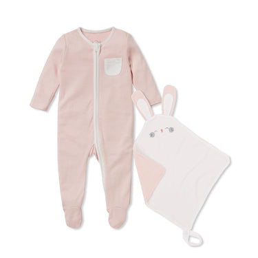 Treat a precious little one to something soft with our Baby Girl Gift Set. The set includes our bestselling Zip Baby Pajamas or Romper which are designed to make parenting simpler with a zip from head to toe for quick changes. The Bunny Comforter is ideal for snuggling and has a loop to attach to a dummy or pushchair. Both pieces are crafted from our softest signature fabric for a gentle touch on sensitive skin.