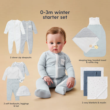 Our Starter Sets are the perfect beginning to every baby’s story - 12 pieces thoughtfully curated from our most-loved essentials, designed for every time of year. Made from the softest, sustainable fabrics to comfort baby and bring calm to those precious early days.