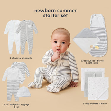 Our Starter Sets are the perfect beginning to every baby’s story - 12 pieces thoughtfully curated from our most-loved essentials, designed for every time of year. Made from the softest, sustainable fabrics to comfort baby and bring calm to those precious early days.