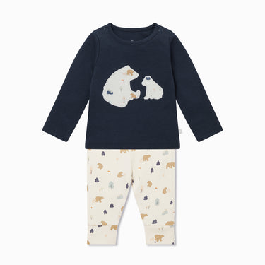 Our Bear Tee & Leggings Outfit makes the perfect PJs or set for playtime. Both pieces are crafted in our signature bamboo from viscose & organic cotton fabric for comfort. The leggings feature a playful all-over bear print and are made in our soft signature fabric.