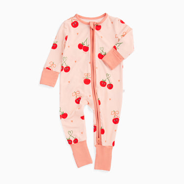 Sweet dreams start with cherries. These baby pajamas feature a sweet cherry print and are made from soft, stretchy modal for all-night comfort. The smart two-way zip makes changes quicker and calmer.