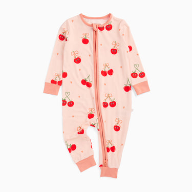 Sweet dreams start with cherries. These baby pajamas feature a sweet cherry print and are made from soft, stretchy modal for all-night comfort. The smart two-way zip makes changes quicker and calmer.