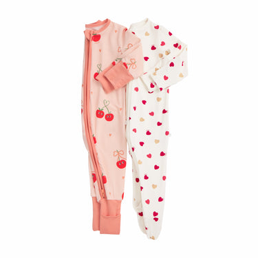 Berry Cherry & Love Heart Clever Zip Baby Pajamas 2 Pack
