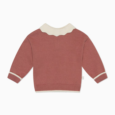 Made from soft organic cotton with a scalloped collar, this knitted sweater is a go-to for comfort and cuteness. It's perfect for playdates or lounging at home and has buttons on the back for easy dressing.