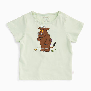 Let little imaginations run wild in our Gruffalo Tee - the perfect daytime layer for playful adventures. Made from 100% organic cotton, it features a bold Gruffalo placement print on a soft mint green base. With poppers on the shoulder up to 2Y, it’s as practical as it is adorable.