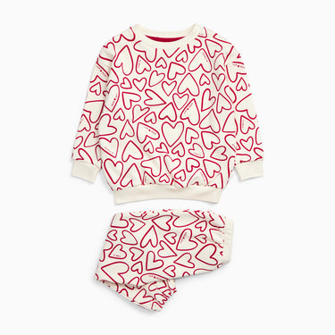 A little love, head to toe. This matching Valentine’s outfit includes an oversized sweater and joggers, both made from soft bamboo from viscose blend fabric with a sweet red heart print. Cute, comfy and easy to dress.