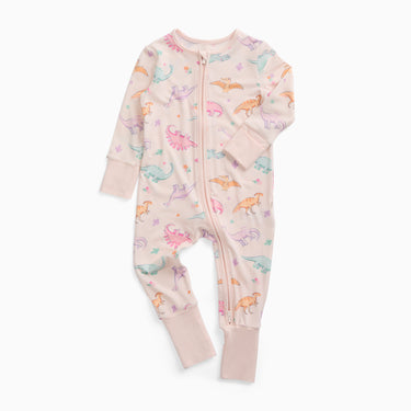 Dinosaur Nights Clever Zip Baby Pajamas - Pink