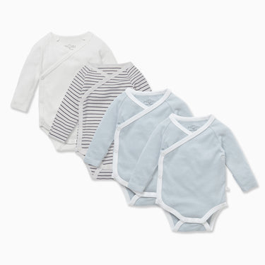 Our Long Sleeve Kimono Bodysuit 4 Pack is crafted from our signature bamboo and organic cotton fabric, to ensure only the softest touch on baby’s sensitive skin. Designed for both style and practicality, the baby bodysuits feature a wrap-style front with poppers for fuss-free dressing.