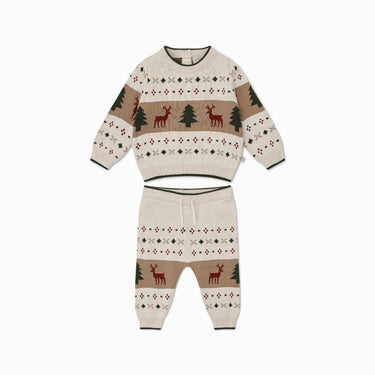 We've got their Christmas outfit sorted. This comfortable organic cotton set includes a cozy sweater with buttons on the back and matching joggers.