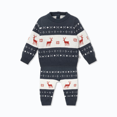 Our Knitted Reindeer Sweater & Joggers Outfit is perfect for the holiday season. Both pieces are made from soft & cosy knitted organic cotton and printed with a fun reindeer motif. The bottoms have an elasticated waistband for comfort. Discover supersoft Christmas sleepwear for the night before too.
