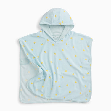 Keep little ones cozy and dry after a swim with our Lemon Terry Towelling Hooded Poncho. Designed in soft organic cotton blend terry with a fun lemon print, it features a hood and clever button sides that can be worn open or as sleeves.