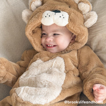 Our lion pramsuit is perfect for your little cub's wild winter outings. It's made from super snuggly faux fur, with a cosy hood and quick zipper on the front.