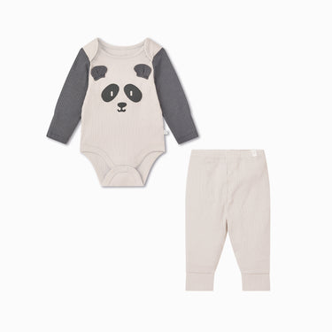 We've made dressing your little one easy with our comfortable Panda outfit. The baby bodysuit features an envelope neck for easy dressing and poppers on the crotch for quick changes. The leggings are made with a little stretch to give crawlers & walkers room to move.