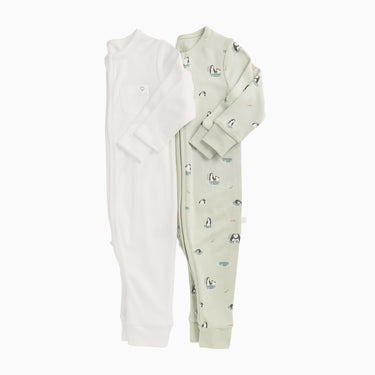 Double the comfort, double the ease. Our 2-Pack Clever Zip Snug Fit Pajamas & Romper includes one playful penguin print and one classic white, both crafted from our supersoft signature fabric. The clever two-way zip means quicker changes, whether it's 2am or 2pm.