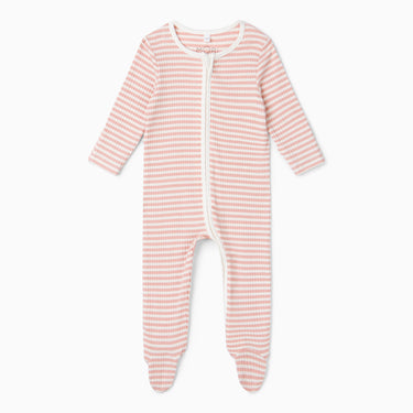 Pink Stripe Ribbed Clever Zip Footed Baby Pajamas