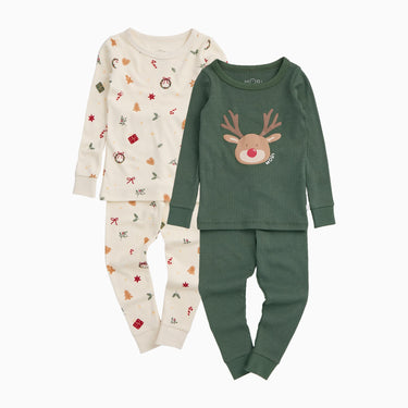 Reindeer Ribbed & Christmas Pajama Set 2 Pack
