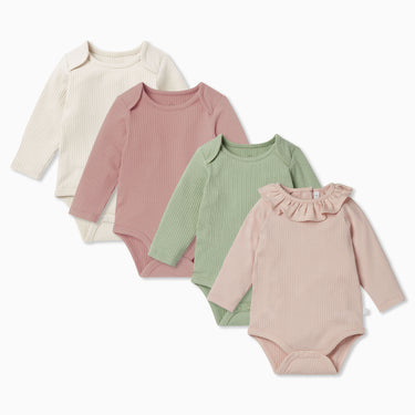 Ribbed Long Sleeve Bodysuit 4 Pack