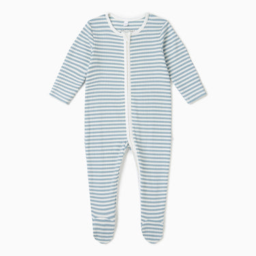 Sea Stripe Ribbed Clever Zip Footed Baby Pajamas